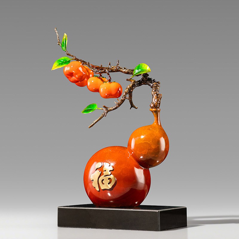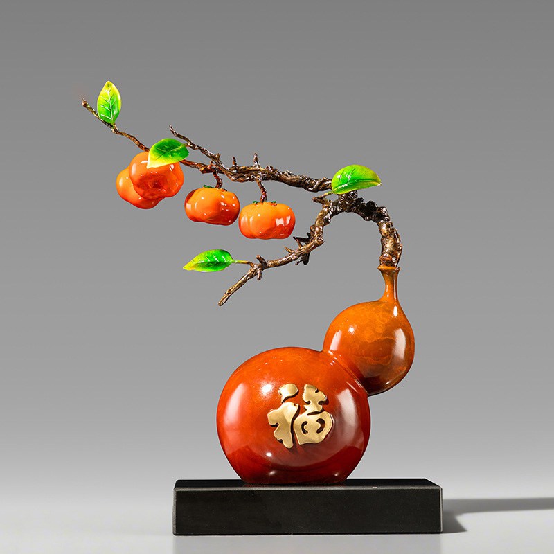 铜葫芦摆件,枝果丰盈寓意事事如意,诸事顺心;色彩细腻,古朴典雅,装饰与送礼佳选