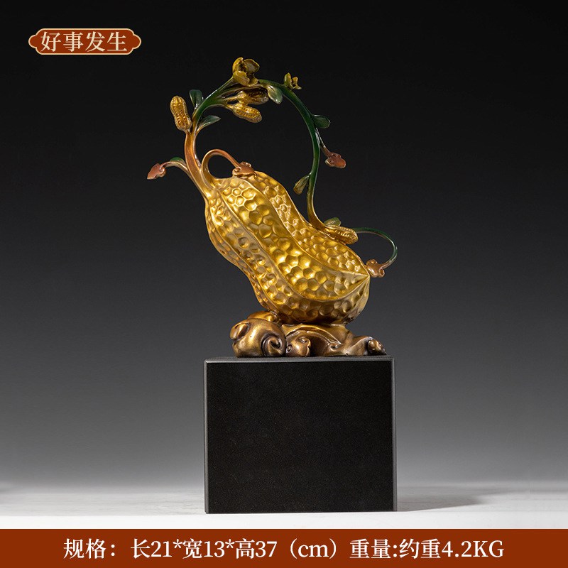 铜铸花生摆件,寓意好事发生与吉祥如意,原创设计,全铜材质,匠心手工打造,精致典雅