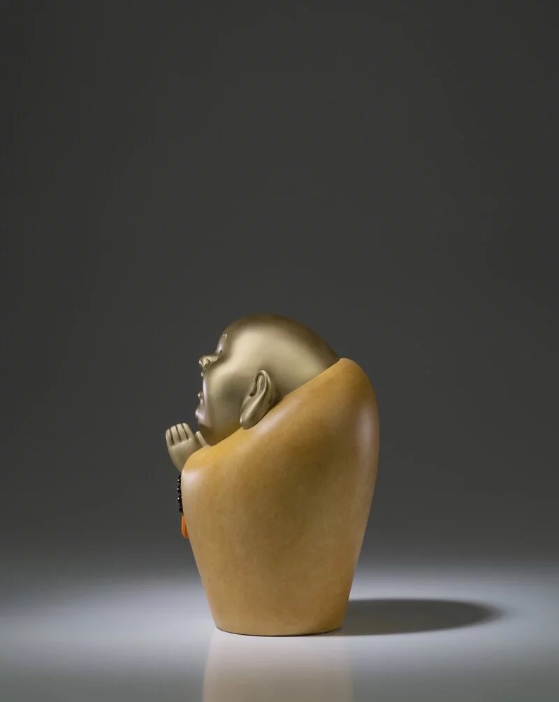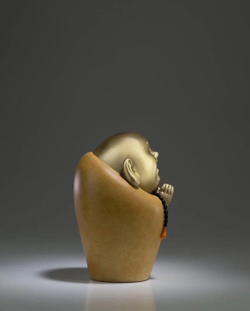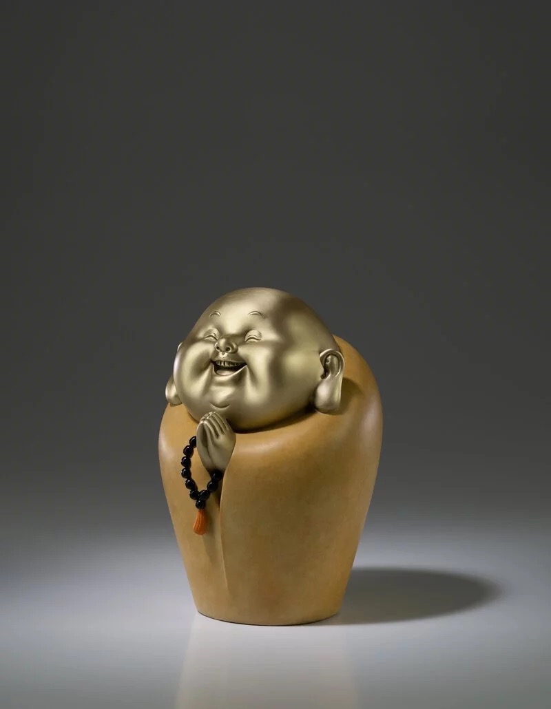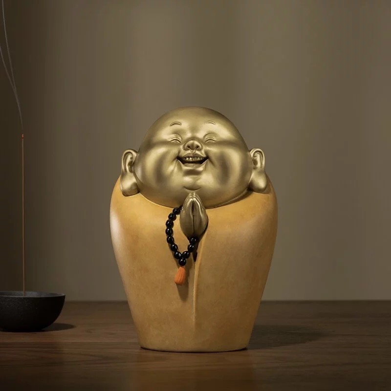 一尊弥勒佛,笑口常开,满心欢喜;造型简约,禅意十足搭配最新式的颜料,欢喜自在,和气生财